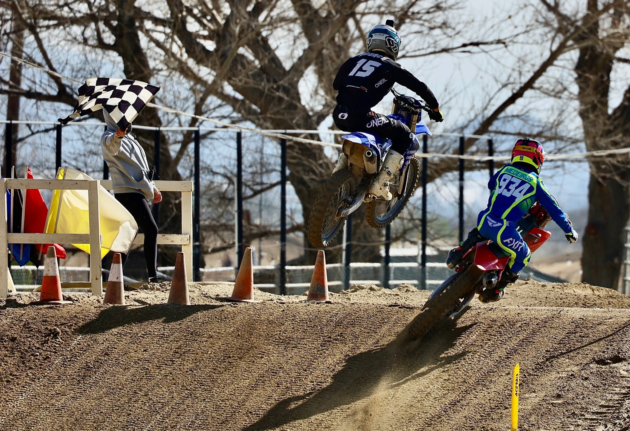 Carter Dubach (15) won the first moto of the Open Expert class with Brian Medeiros (934) close behind. By day’s end Medeiros would win the Open Experts with a 2-1.