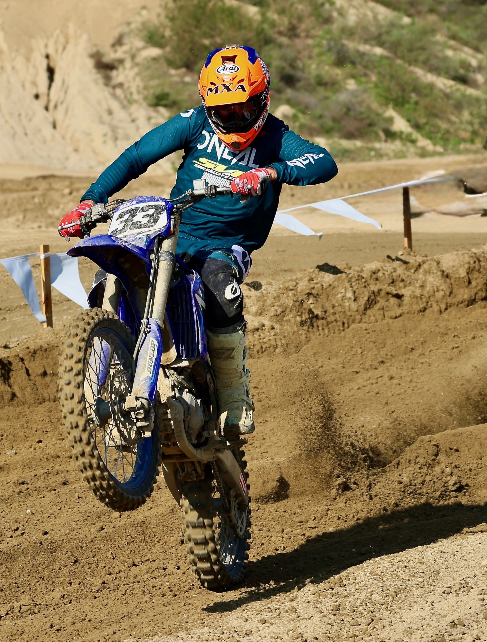 The riders poured into Glen Helen Raceway Raceway because the rain had stopped on Thursday, the main road in was opened up for the first time in weeks (because when it rains the rushing water coming down from the mountains floods the road). But, Saturday promised warmer temps and little less wind (although that promise came to an end later in the day). The track was a thing of beauty. It featured the big Shoei hill, followed by the Mt. Saint Helen downhill and the twists and turns of the Glen Helen bowl, the hip jump, the Velodrome and the deep sand on the straight that leads to the tree turn. The track crew had worked on it on Friday to undo the damage done by the Thursday’s rain storm and were out in force on Saturday morning with the Cat and the three-way (Part ripper and part lawn mower reel—although it doesn’t cut grass it just blends the ruts left by the Cat and the Grader into an incredible mixture of traction making loam.